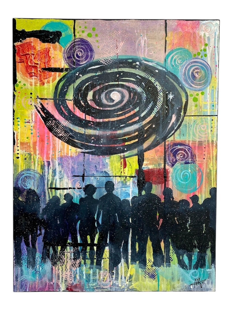La pratique artistique de Marie Eve Cloutier se distingue par son approche spontanée et intuitive de la peinture, donnant naissance à des œuvres authentiques et uniques, empreintes de sensibilité et d’émotion. Chaque toile est le résultat d’un geste libre et instinctif, capturant l’instant et traduisant une énergie brute qui résonne avec le spectateur.