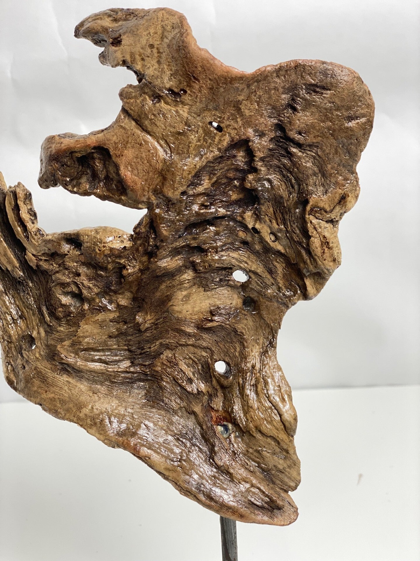 Marie-Eve Cloutier (1974, ...), L'ange , assemblage de bois flotté et métal, vernis, 2025, dimension: 13'' x 8'' x 2''